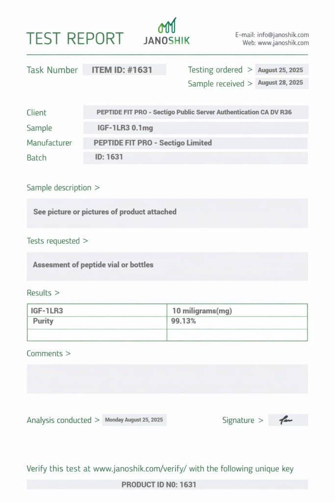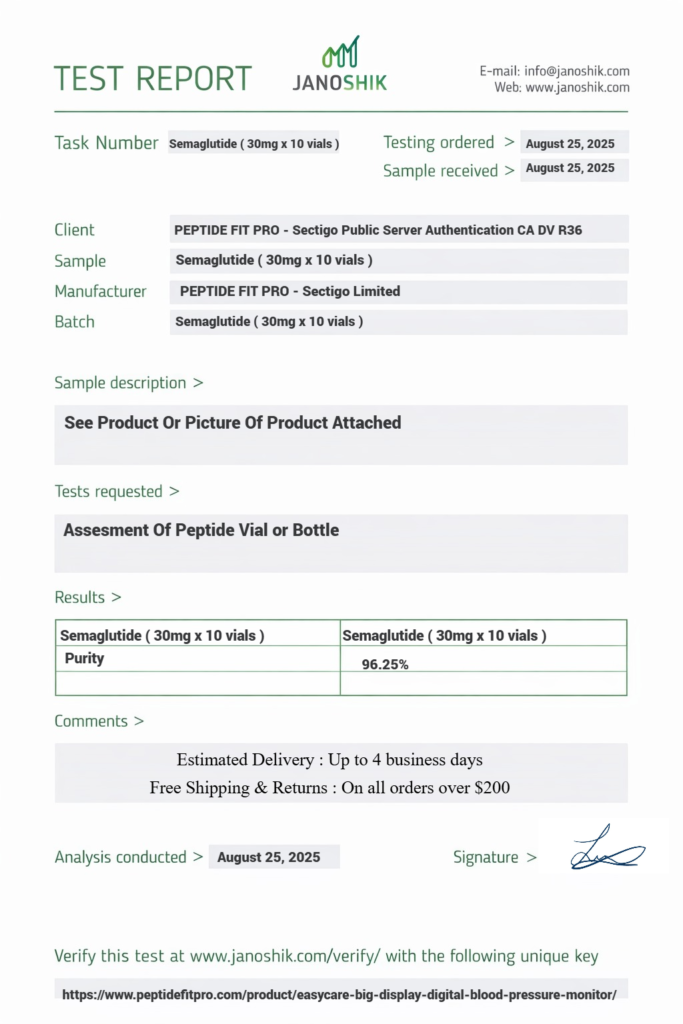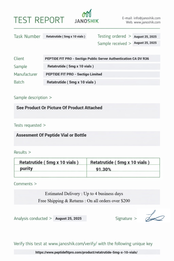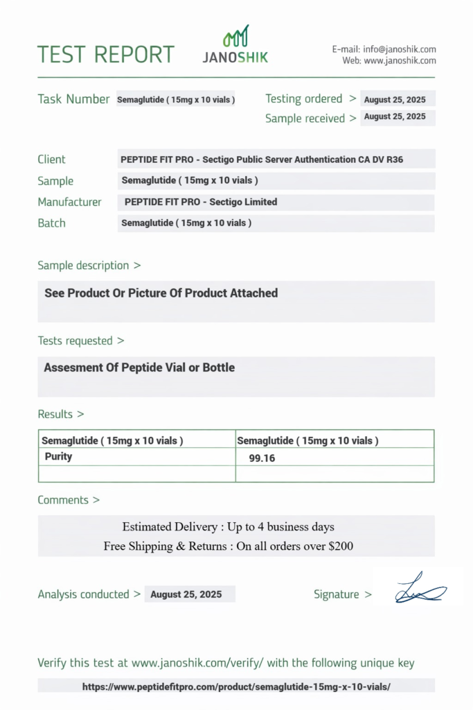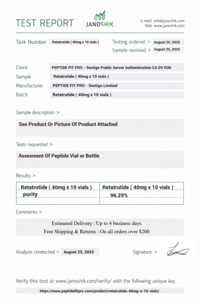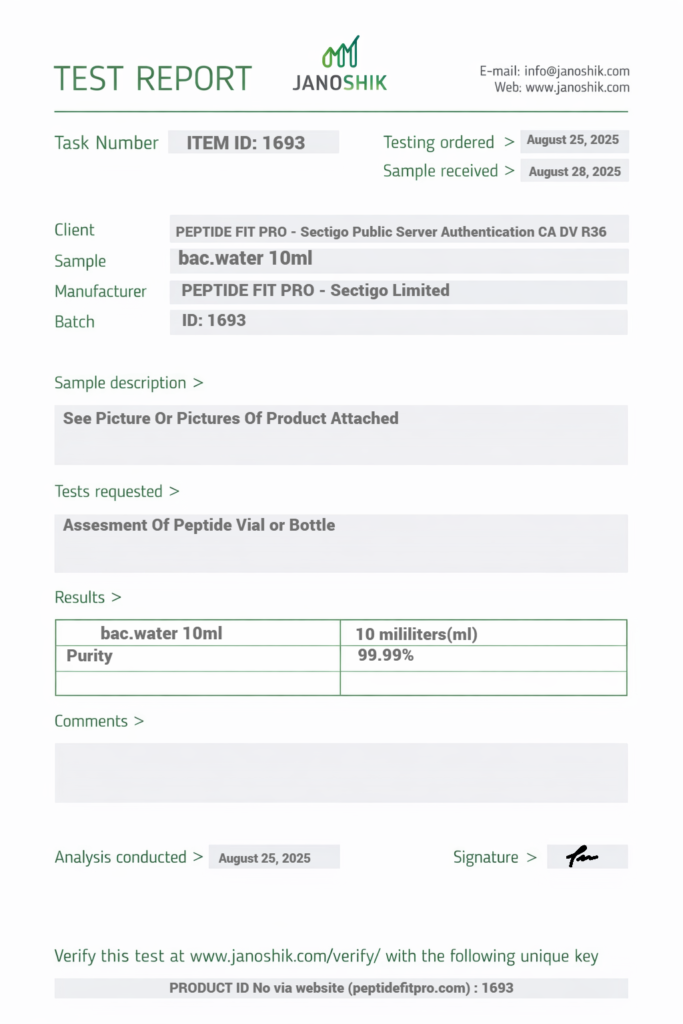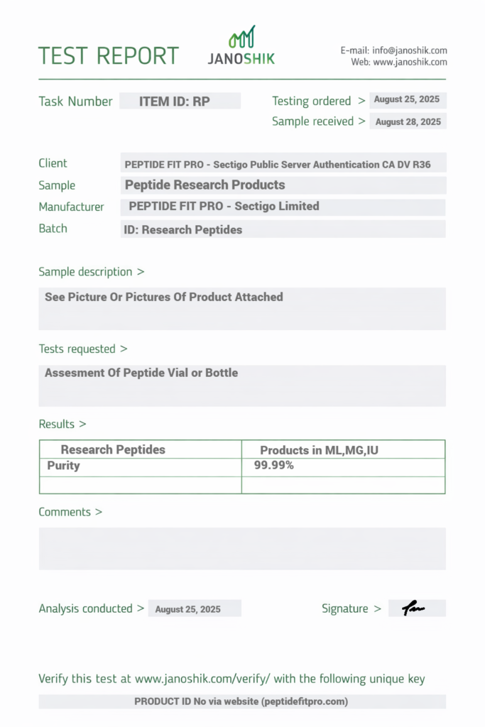 At Peptide Fit Pro, quality assurance and transparency are at the core of everything we do. We are committed to providing products that meet strict quality control standards and are supported by proper documentation, including Certificates of Analysis (COA) where applicable.